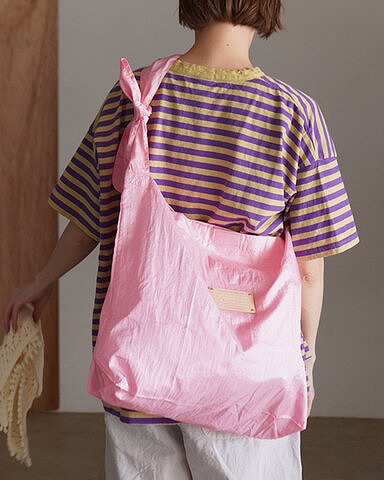 持ち手は結び方で長さ調整ができ、手持ちから斜めがけまで対応。