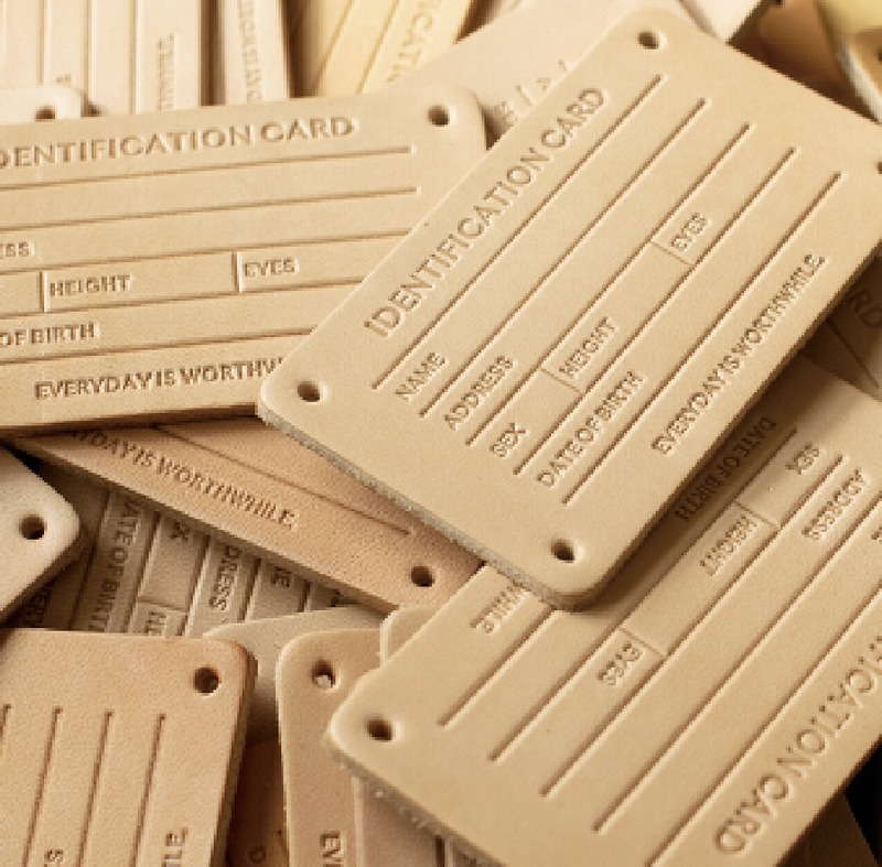 IDカードをモチーフにしたレザータグもさりげないアクセント。