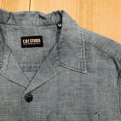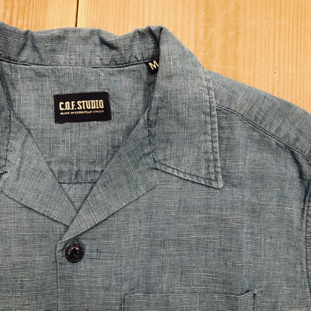 雲を吹き飛ばすようなブルーの開襟シャツが