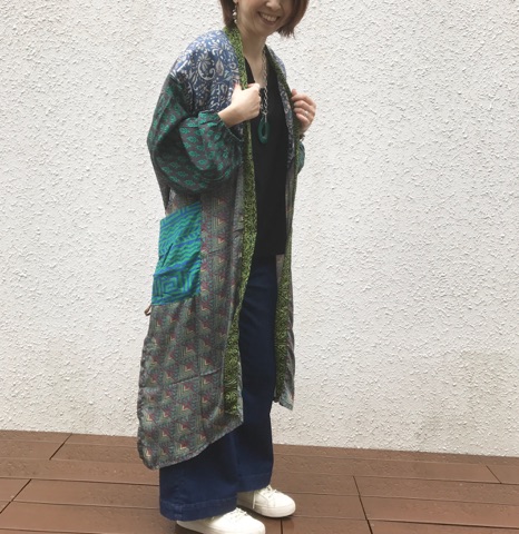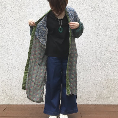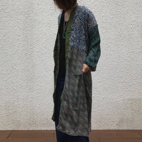ビンテージサリー生地を組み合わせたカーディガンです。