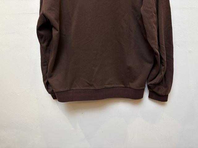 しっとりとしたタッチのミニ裏毛を使用し、製品段階で黒のピグメント染色を施した後にバイオ加工を行うことで、男らしい粗野な雰囲気を出しています。この特殊な加工により、単なるスウェットとは一線を画す独特の風合いと質感を実現し、着込むほどに味わいが増していく経年変化も楽しめます。