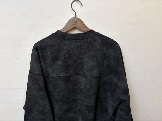 ムラのある独特な表情を生み出すバイオストーンウォッシュ加工により、生地特有のぬめり感と深みのある風合いが魅力的な仕上がりとなっています。この加工によって生まれる表情の豊かさが、シンプルながらも存在感のある1枚に昇華されています。