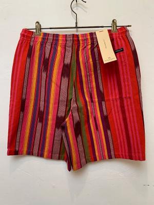 マルチカラーのストライプショートパンツです。赤をベースにした遊び心満載のカラーリングが目を惹きます。個性を引き出し、存在感のあるアイテムです。ウエストはゴムと紐の仕様なのでリラックスして履き続ける事が可能です。
