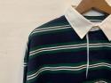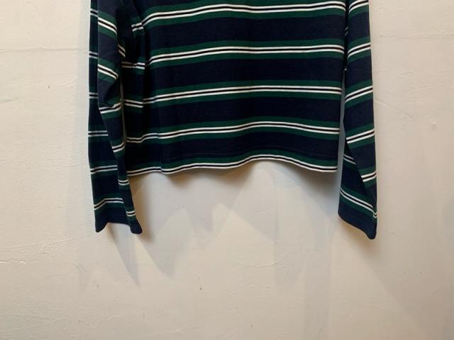 トレンド感のある、トラッドな雰囲気のラガーシャツプルオーバー。どこか懐かしい雰囲気のパネルボーダーが印象的なデザインで、秋のスタイリングの主役になること間違いなしの一枚。野暮ったくならないようなコンパクトな着丈にしており、ワイドめのパンツやスカートなど、ボリュームのあるボトムと好相性です。