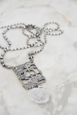 唯一無二の特別感を味わえる、Gem Kingdomのネックレス。一本でも存在感のあるシルバーのトップ。長さがあるのでシャツやタートルネックなど首周りの広いお洋服とも合わせられます。