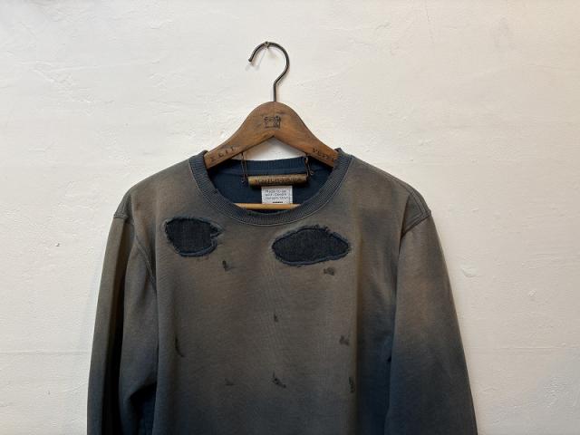 加工感にこだわったヴィンテージなクルーネックスウェット。やや薄手の7.4オンスの裏毛を使用しており、ダメージ加工、さらに随所にリメイク加工を施しヴィンテージライクな雰囲気をプラス。また、製品染めをすることで、経年変化を感じるムラ感のある表情に仕上げています。