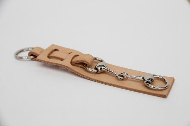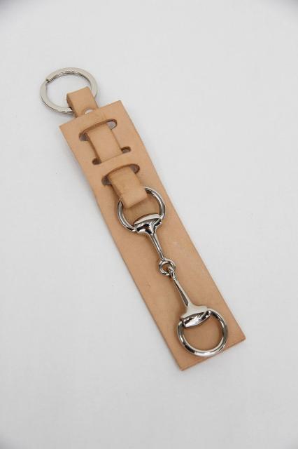 ホーススナッフルビットのパーツとレザーが品のある雰囲気を漂わせるIDEANAのキーホルダー。バッグチャームとしてもおすすめです。