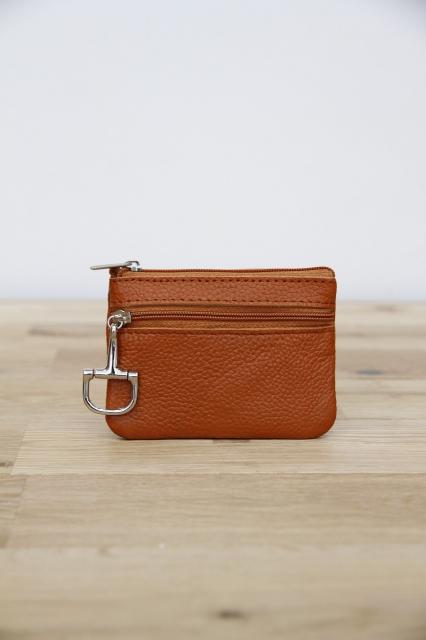 ホーススナッフルビットのパーツがアクセントに、品のある雰囲気を漂わせるIDEANAのレザーコインケース。中には鍵を付けられるリングが付いています。