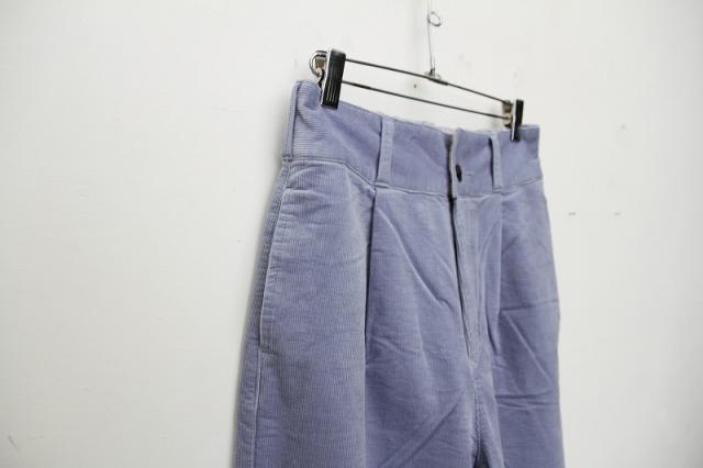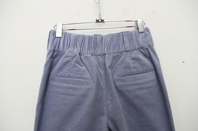 14wの細目のコーデュロイを使用。二重織の組織で柔らかくストレッチもきいているのでとても履きやすいアイテムです。裏側を起毛することで、ウォーム感も出しています。ウエストのゴム仕様、ストレッチ感によりイージーに履けるワイドパンツになっております。