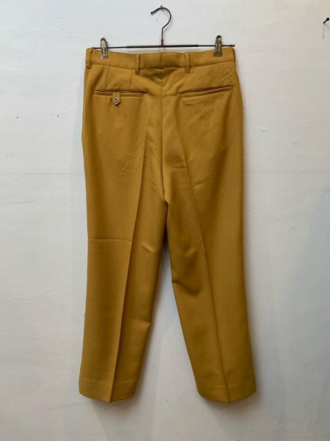 ポリエステル素材のストレッチ生地を使用しており、とろみのある風合いで穿き心地がよく、洗濯にも強く扱いやすいのが特徴です。センタープレスが施され、腰回りはすっきりとしたノータック仕立て。裾にかけてテーパードになった程良い太さのストレートシルエットで、カジュアルにもきれいめスタイルにも使える万能アイテムです。