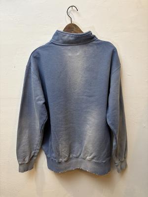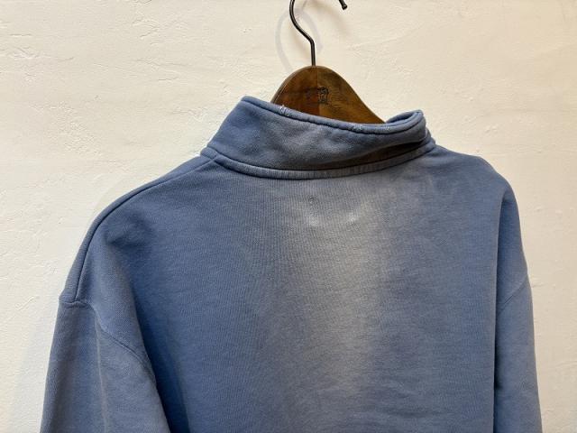 ムラ染めが特徴のハーフジップスウェットシャツ。初秋からちょうどいい厚みの10オンスの裏毛をスウェットに仕立て、製品染めとダメージ加工によりヴィンテージライクな雰囲気に仕上げています。ベーシックなシルエットでデニムと好相性!色違いで欲しくなるような幅広いカラー展開とスタイリングに映える発色で、一枚でも様になるアイテムです。