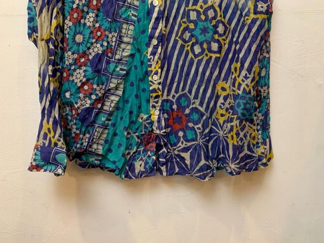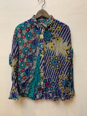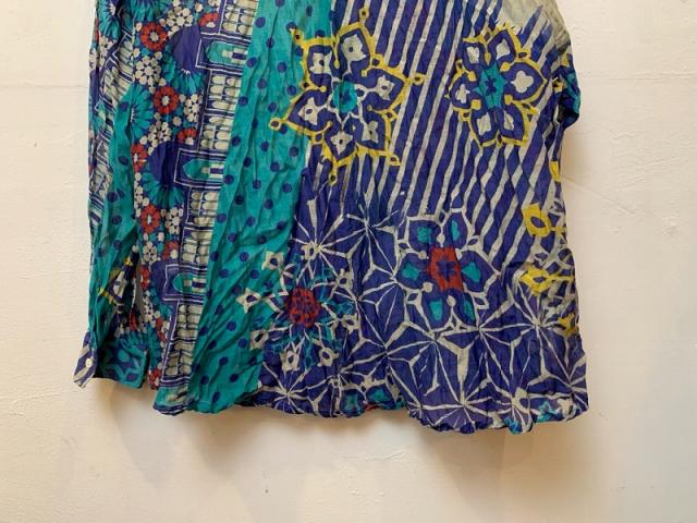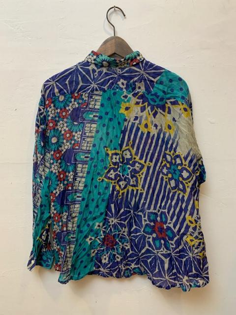 ストール柄を使用し、シャツに仕立てました。 シルクコットンの上品な素材感をそのままお楽しみください。