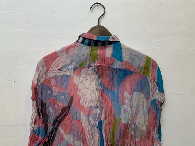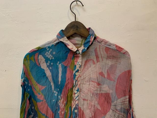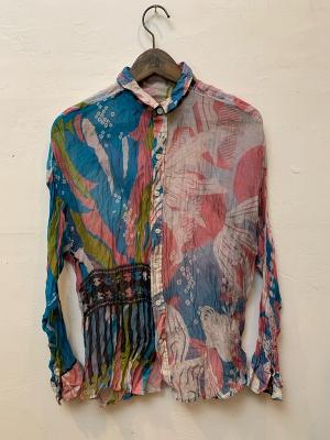 ストール柄を使用し、シャツに仕立てました。 シルクコットンの上品な素材感をそのままお楽しみください。