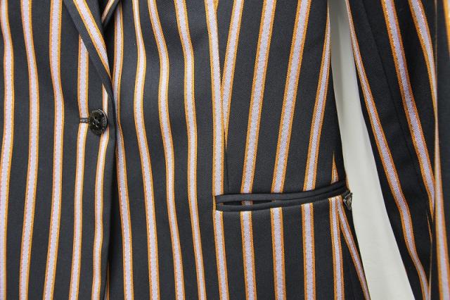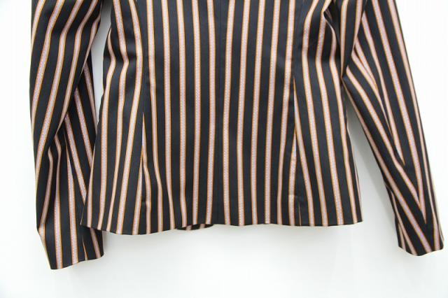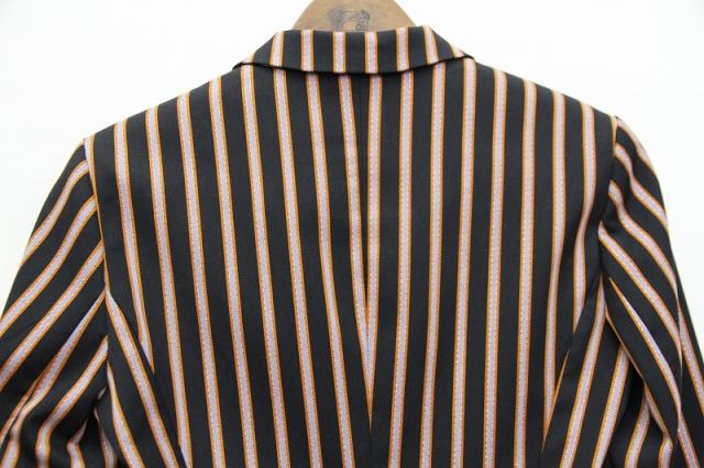光沢のあるストライプが特別感のある、ヴィンテージライクなテーラードジャケット。裏地にまでデザインが施されスキの無い一着となっております。シンプルにパンツスタイルでも、ロングスカートと合わせてゴージャス感を出しても素敵です。