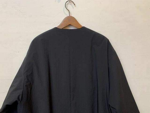 表面にシワ加工を施しており、シンプルながらも雰囲気のある中綿ノーカラーコートに仕上げました。