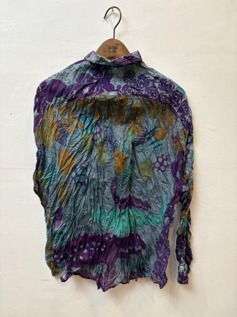 しわ加工は永久ではありません。洗濯後、製品が完全に乾燥したのち、軽くシワを入れながら専用の巾着袋に収納し、保存されると自然なシワ加工を楽しむことができます。