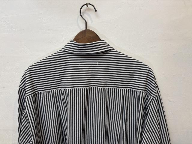 2WAYで楽しめるオーバーシルエットのシャツ。着た時にポイントになる、立体的な脇のマチ部分は、脇のボタンを使用してカシュクールシャツとしても着用していただけます。使用している素材は、毛羽の少ない上質な糸できめこまやかに織ったタイプライター。