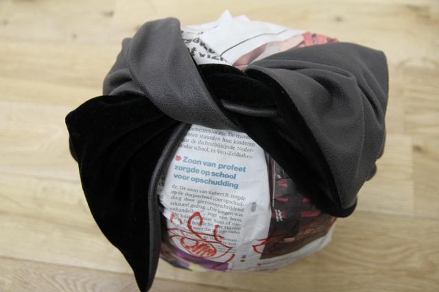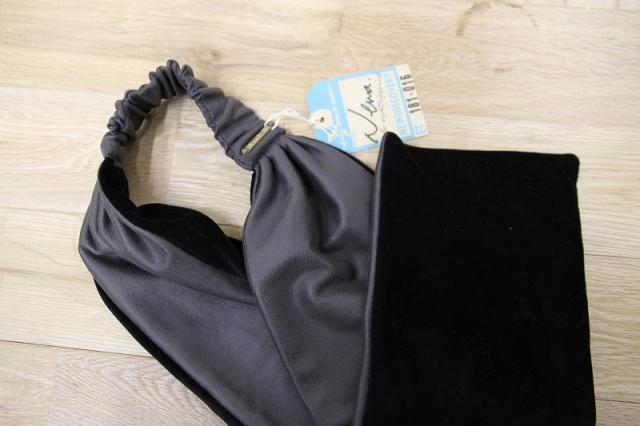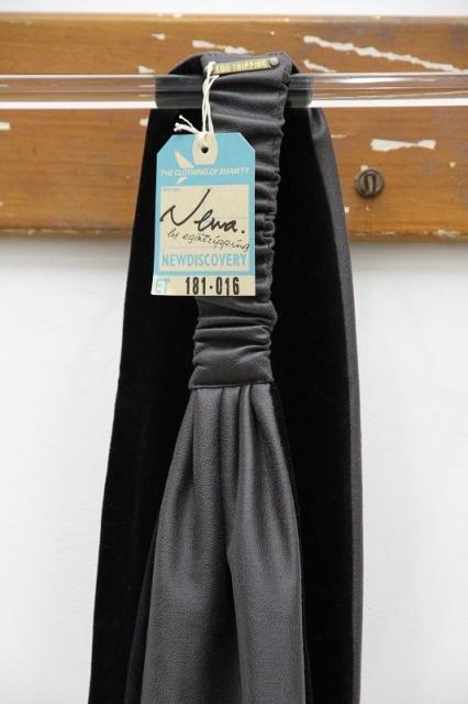 合皮とベロアを使用した女性用のターバンです。合皮の面とベロアの面をどちらも表にして使用する事が出来ます。頭の上で縛るのが一般的ですが、髪の長さは関係なくアレンジ次第で様々なスタイルで巻くことが出来ます。ゴムが入っている中心の合皮部分には、オリジナルのプレートがポイントで付いています。