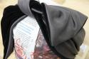 合皮とベロアを使用した女性用のターバンです。合皮の面とベロアの面をどちらも表にして使用する事が出来ます。頭の上で縛るのが一般的ですが、髪の長さは関係なくアレンジ次第で様々なスタイルで巻くことが出来ます。ゴムが入っている中心の合皮部分には、オリジナルのプレートがポイントで付いています。