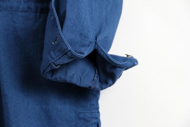 岡山県倉敷市より1952年創業のブランド、Johnbull(ジョンブル)より、真っ青なカラーが印象的なデニムジャケット。デニムは通常、緯糸には生成りの糸を使用し、色落ちをしたり立体感のある表情になっておりますが、こちらは経糸も緯糸もインディゴ染めの糸を使用し、クリーンな印象のデニム生地に仕上がっております。デニムジャケットに、スポーツ感のある紐で今年らしいデザインに仕上げております。そのまま着てビッグシルエットでも素敵ですが、紐を絞ってウエストマークしたシルエットにもアレンジして頂けます。