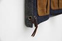 表と裏の生地が異なり、裾の両端に革紐がついているのがポイントになります。