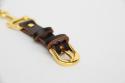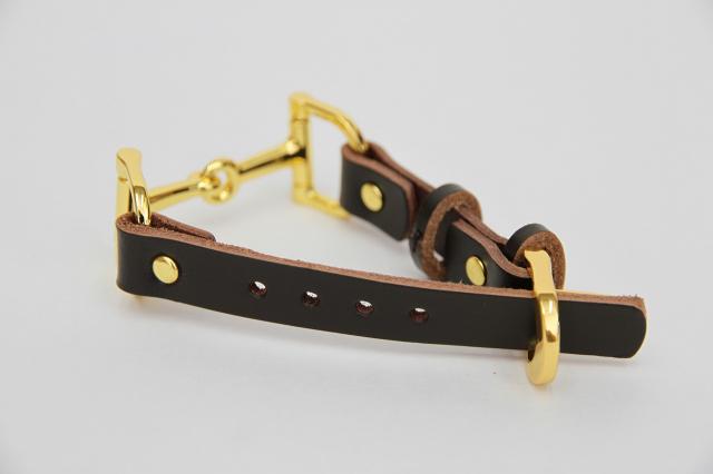 ホーススナッフルビットのパーツとレザーベルトが品のある雰囲気を漂わせるIDEANAのレザーブレスレット。腕時計とも相性のいいデザインです。