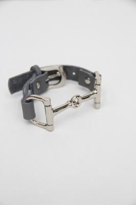 ホーススナッフルビットのパーツとレザーベルトが品のある雰囲気を漂わせるIDEANAのレザーブレスレット。腕時計とも相性のいいデザインです。