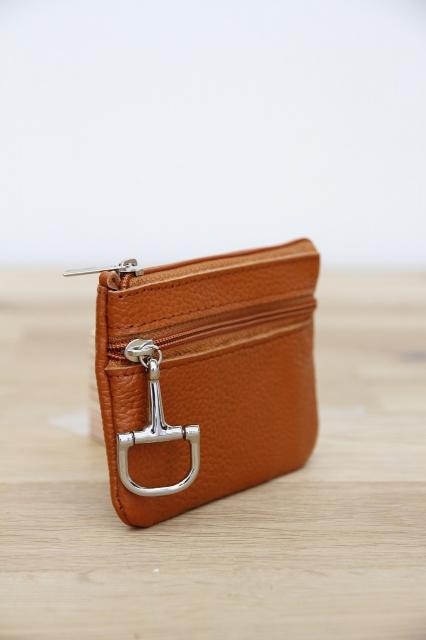 ホーススナッフルビットのパーツがアクセントに、品のある雰囲気を漂わせるIDEANAのレザーコインケース。中には鍵を付けられるリングが付いています。