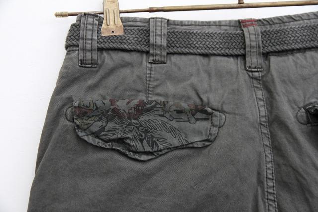 ポケット部分の花柄が色気を感じさせる、ベルト付きショートパンツです。しっかりした生地感でカーゴパンツのテイストを盛り込んでおります。全体的に落ち着いた色味なため、コーディネートに迷わずラフに穿くことができます。