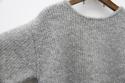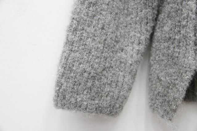 アルパカ(74%)とウール(26%)のみでループヤーンを紡績した毛糸で編み上げられたプルオーバーです。少しゆとりのある身幅で、ボートネックの首周り、サイドスリットが入った前後で段差のある裾のデザイン、リブは袖口のみに付くなど、シンプルでリラックス感のあるプルオーバーに仕上がっています。総針(フルニードル)でしっかりと編み上げているので、程良い重量感と弾力感、高い保温性があり、アルパカならではの滑らかな肌触りと相俟ってまるでウールのタオルに包まれているようなとても気持ち良い着心地になります。一般的に意匠糸(ファンシーヤーン)と呼ばれるこのような糸で化繊を混紡しないのはとても珍しいです。