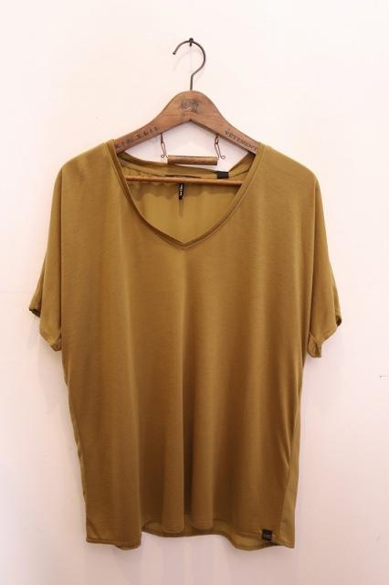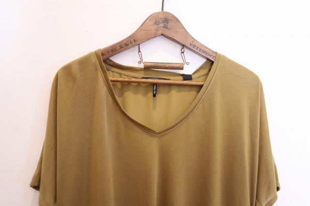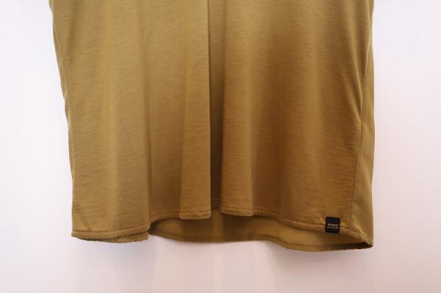 前後で異なる素材を使用したドレープ感のあるTシャツ。吸湿性、放湿性に優れ夏にサラリとシャツ感覚で着用頂けます。首元の開きに余裕があるのでインナーと合わせて頂くことをオススメします。