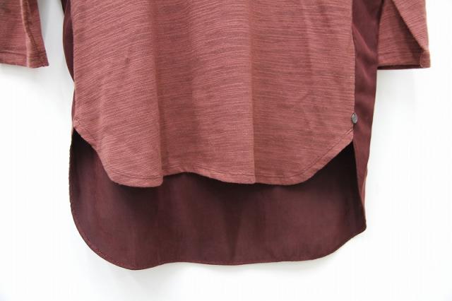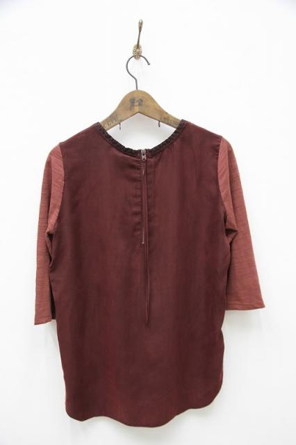 前後の生地が異素材になっており前後の雰囲気違いを楽しめる七分袖Tシャツ。首回りのデザインや後ろのZIPが特徴的で女性らしく、インナーとしてもインパクトある一枚になっております。ワイドパンツや、細めのパンツどちらでも合わせやすいです。