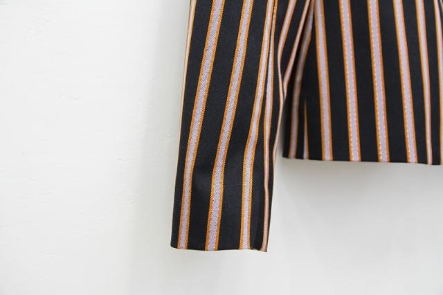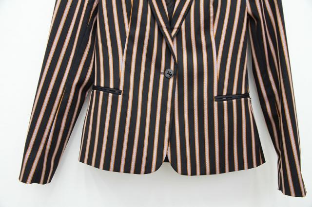 光沢のあるストライプが特別感のある、ヴィンテージライクなテーラードジャケット。裏地にまでデザインが施されスキの無い一着となっております。シンプルにパンツスタイルでも、ロングスカートと合わせてゴージャス感を出しても素敵です。