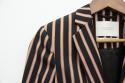 光沢のあるストライプが特別感のある、ヴィンテージライクなテーラードジャケット。裏地にまでデザインが施されスキの無い一着となっております。シンプルにパンツスタイルでも、ロングスカートと合わせてゴージャス感を出しても素敵です。