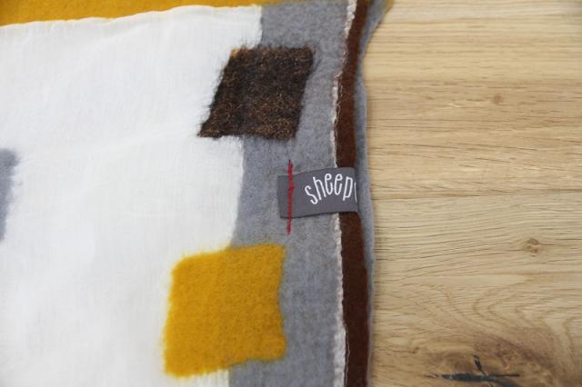 カラフルな色と、異素材を組み合わせたデザインが特徴的なSheepcountのストールです。シルクとウールの組み合わせは、通気性、保湿性、保温性を兼ね備えた素材感。長い期間お使いいただけます。