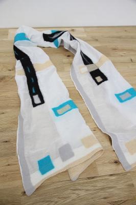 カラフルな色と、異素材を組み合わせたデザインが特徴的なSheepcountのストールです。シルクとウールの組み合わせは、通気性、保湿性、保温性を兼ね備えた素材感。長い期間お使いいただけます。