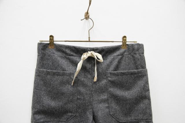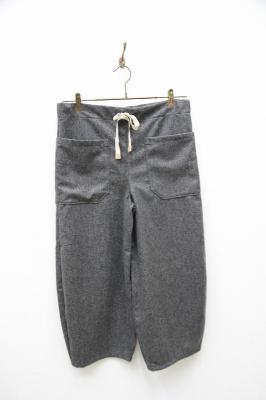ウール素材の生地なので秋冬シーズンに最適です。もんぺを現代風にアレンジしたような変わったなシルエットが特徴。ウエストは紐で調節可能、男女兼用の一本です。