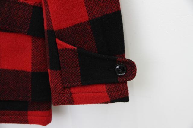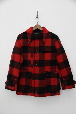 アメカジのバッファローチェックのウールジャケットです。腰にかかる丈感で様々なコーディネートを楽しめます。マチのついた立体的なポケットや衿裏に貼られたブラックコーデュロイなどこだわり満載です。薄めに中綿が入っており東北の冬も安心です。