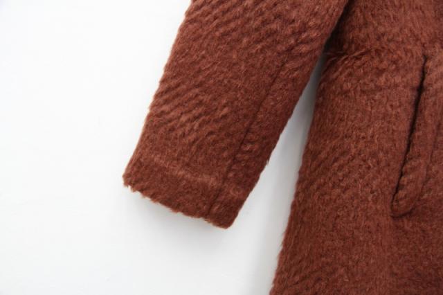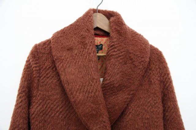 モコモコと温かいウールのコートです。ショールカラーなので首元のボリュームにより暖かさのみならず小顔効果も。高級感の漂う素材感と、裏地のドット柄が可愛いアイテムです。ドレスの上に、またはお気に入りのジーンズやスカートと合わせたりと、非常に使い勝手の良いコートになります。
