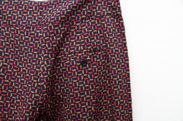 ビスコース素材が高級感を漂わせる、ハイウエストのワイドトラウザーです。特徴的な柄が無地のシャツやニットなどと合わせて頂くだけでも、華やかなスタイルが作れます。九分丈ですっきり見えするのでオールシーズンの着用が可能です。