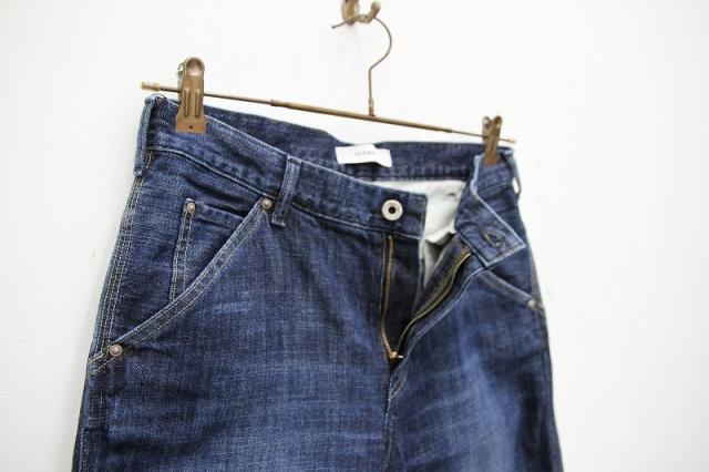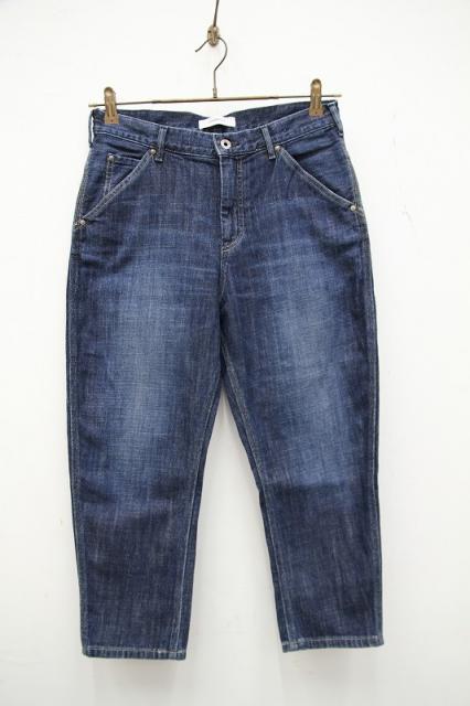 ワークテイストの8分丈ジーンズです。 ポケットの配置バランスやライトな生地感により軽さを感じるジーンズです。 腰回りに少し丸みを持たせ、ひざから裾にかけて絞り込んだ程よいサルエルシルエット。 腰穿きしてロールアップして軽く着こなして頂きたいアイテムです。