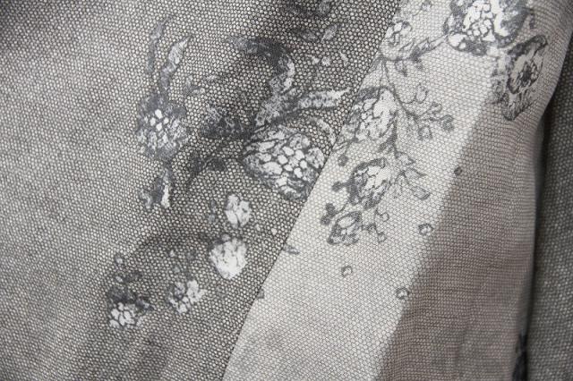 アーティスト、アグネス・マーティンの作品からインスピレーションを受けたレース柄スカート。アンティークレースを何枚も重ね、偶然にできた影を表現したJOHNBULLオリジナルの柄をプリントしています。適度にハリのある生地でボディラインを拾わず、クリーンな着こなしを楽しんで頂けます。裏地が縫われているため透ける心配もございません。