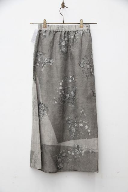 アーティスト、アグネス・マーティンの作品からインスピレーションを受けたレース柄スカート。アンティークレースを何枚も重ね、偶然にできた影を表現したJOHNBULLオリジナルの柄をプリントしています。適度にハリのある生地でボディラインを拾わず、クリーンな着こなしを楽しんで頂けます。裏地が縫われているため透ける心配もございません。