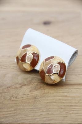 アメリカ製、カフェラテのようなカラーが印象的なヴィンテージイヤリングです。よく見るとパールのようなきらめきが女性らしいデザイン。