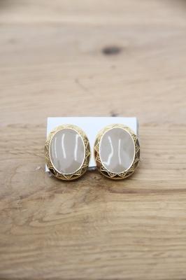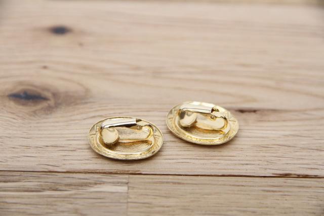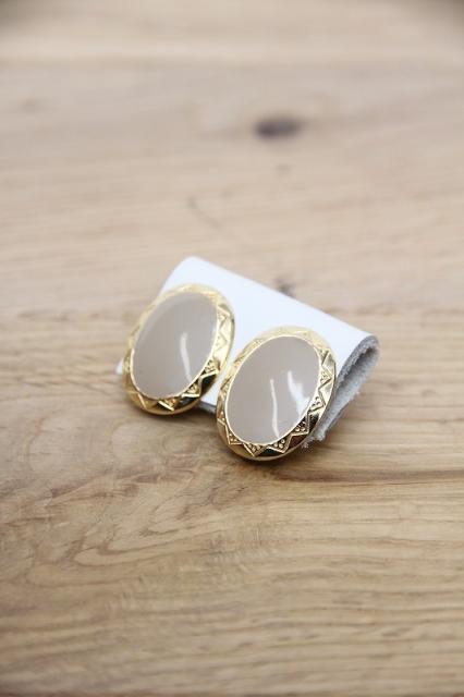 アメリカ製、落ち着いたベージュとフレームの模様が素敵なヴィンテージイヤリングです。とても軽いので耳への負担も少ないです。