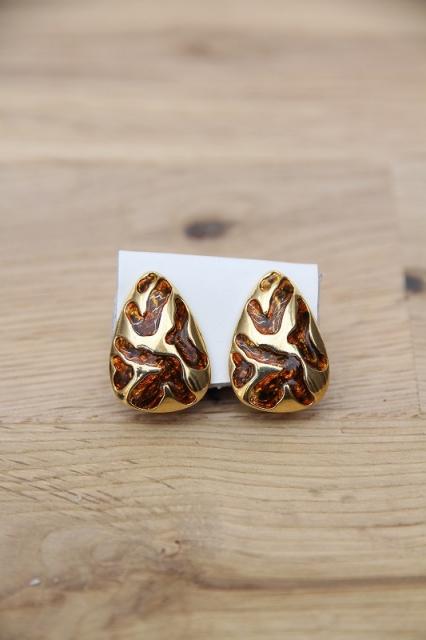 アメリカ製、モダンな茶色の模様が入ったティアドロップ型のヴィンテージイヤリングです。ミリタリーなファッションがお好きな方にもおすすめ♪