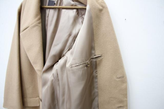繊度が16マイクロンクラスの超極細ウールを使用しました。そのウールに、カシミヤ紡績時に抜け落ちたカシミヤを30%混紡しました。(リサイクルカシミヤと呼ばれます。)コートのパターンはメンズのロングコートをほんの少しだけ調整したため、シャープさが色濃く残ります。着用時に生地を手でなでた際にカシミヤの滑らかさを感じる贅沢なロングコートです。袖を折って着て頂けるように、袖口の裏地との切り替えし部分を深くしております。