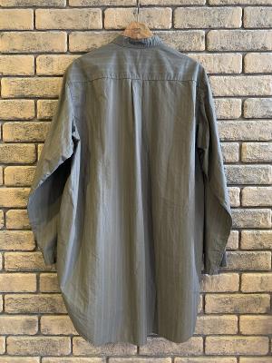 グランパシャツを現代より着用しやすくアップデートしたアイテム。裾のラウンドやフロントに施されたタックといったスリーピングウェアなどに見られるディテールが特徴です。