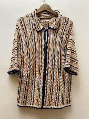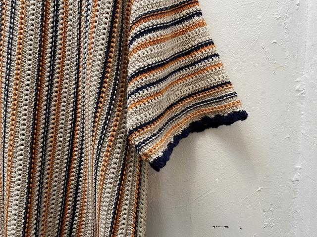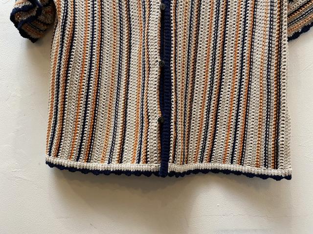 ポロニットデザインの透かし柄カーディガン。透かし柄の中でも、かぎ針で編みたてたような柄をアレンジして仕上げています。編み目もゆる過ぎず、透け過ぎない適度な透かし柄となっており、生地を横使いすることでストライプ柄を表現しています。ハンドクラフト感のあふれるデザインで、トレンド感のあるスタイルがお楽しみ頂けます。春先から夏にかけて、デニムに合わせて着こなして頂きたい一着です。
