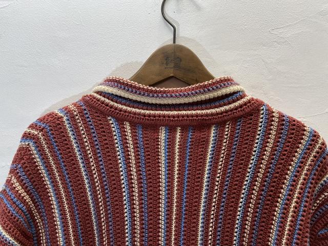 ポロニットデザインの透かし柄カーディガン。透かし柄の中でも、かぎ針で編みたてたような柄をアレンジして仕上げています。編み目もゆる過ぎず、透け過ぎない適度な透かし柄となっており、生地を横使いすることでストライプ柄を表現しています。ハンドクラフト感のあふれるデザインで、トレンド感のあるスタイルがお楽しみ頂けます。春先から夏にかけて、デニムに合わせて着こなして頂きたい一着です。